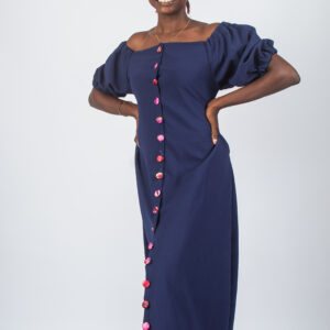The Arewà Dress Design is a mix of a high quality crepe fabric and Adire cover-buttons all the way from the top, down. The Arewà Dress has elastic sleeves which can be easily adjusted to suit one’s taste and style. The Arewà Dresss had inward pockets.